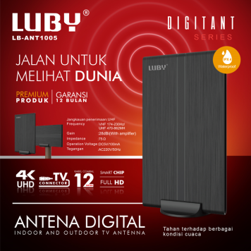Antena Digital Luby tipe LB-ANT1006 Indoor dan Outdoor TV Antena Keunggulan : – 4K UHD – TV Connector – Kabel Coaxial 12 Meter – Smart Chip Full HD Tahan Terhadap berbagai kondisi cuaca Jangkauan penerimaan : UHF Frequency : VHF 174-230 Hz UHF 470-862 MH Gain : 28 dBi1568 Impedance : 75Ω Operation Voltage :… selengkapnya