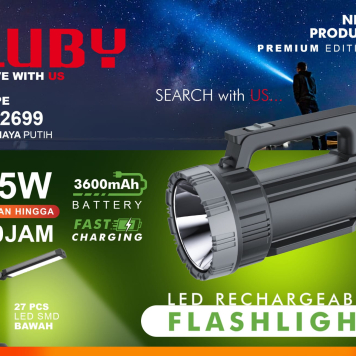 Luby Flashlight Senter Tangan 15 Watt Tahan Lama Rechargeable Isi Ulang L-2699