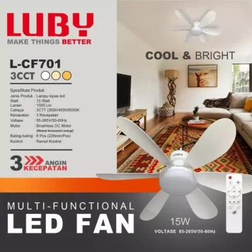 Lampu kipas 15watt LUBY L-CF701 hadir dengan fitur remote control. Cocok untuk kebutuhan pencahayaan Anda.