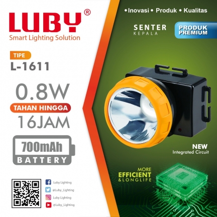 Senter Kepala Luby L-1611 0.8W 16 Jam 400mAh Baterai Rechaargeable Cas