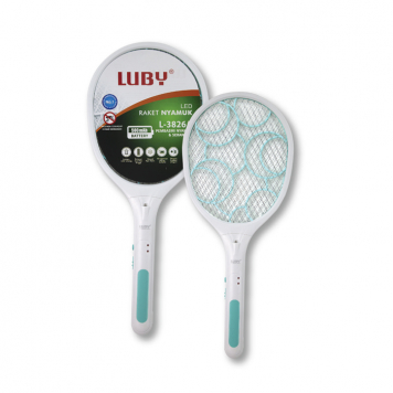 Racket Electric LUBY tipe L-3826 produk import kualitas premium nomor 1 di Indonesia yang berfungsi membunuh nyamuk atau serangga lainnya dengan nyaman di dalam ataupun di luar ruangan dan tidak berpolusi, dilengkapi dengan lampu LED yang bisa digunakan sebagai senter yang bekerja hingga 50.000 jam yang hemat energi, baterai rechargeble dengan kapasitas 500mAh yang hemat serta tahan lama dan bisa digunakan 250 kali.